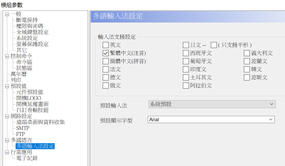 - 多語輸入功能:支持 16 種語言,可應(yīng)用于配方參數(shù)與賬號輸入