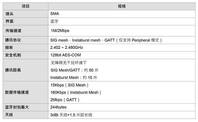 -IG Mesh: 標準藍牙Mesh協(xié)議,15Kbps傳輸速率,有效距離約50m